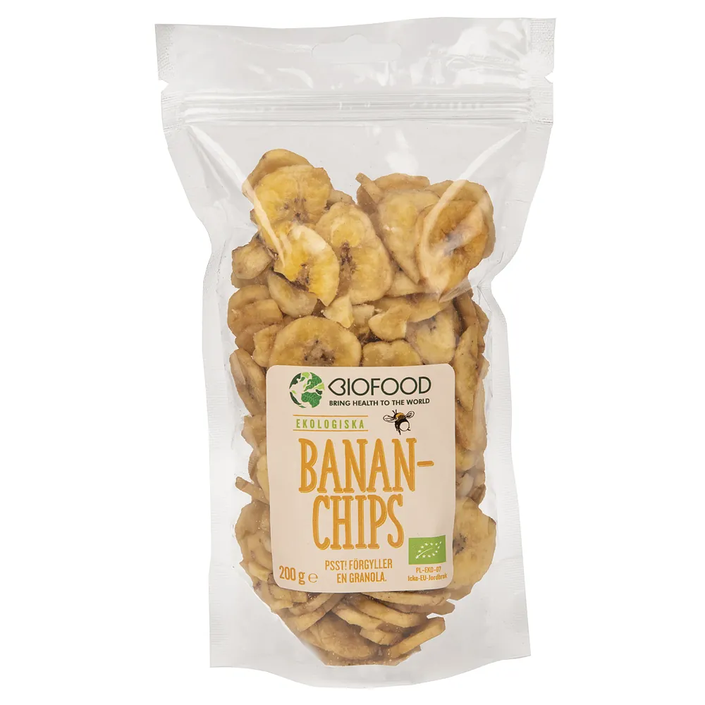 Våra knapriga bananchips smakar exotiskt! Goda i müsli och granola, i yoghurten, i frukt- och nötblandningar eller som naturligt godis när du blir sugen på sött.