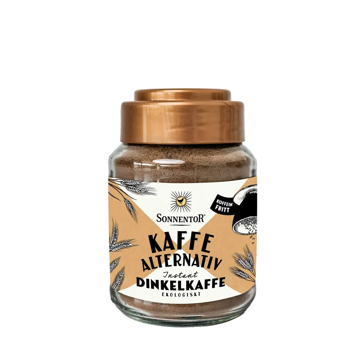 Sonnentors dinkelkaffe är ett ekologiskt koffeinfritt snabbkaffepulver gjort på 100 % dinkel.