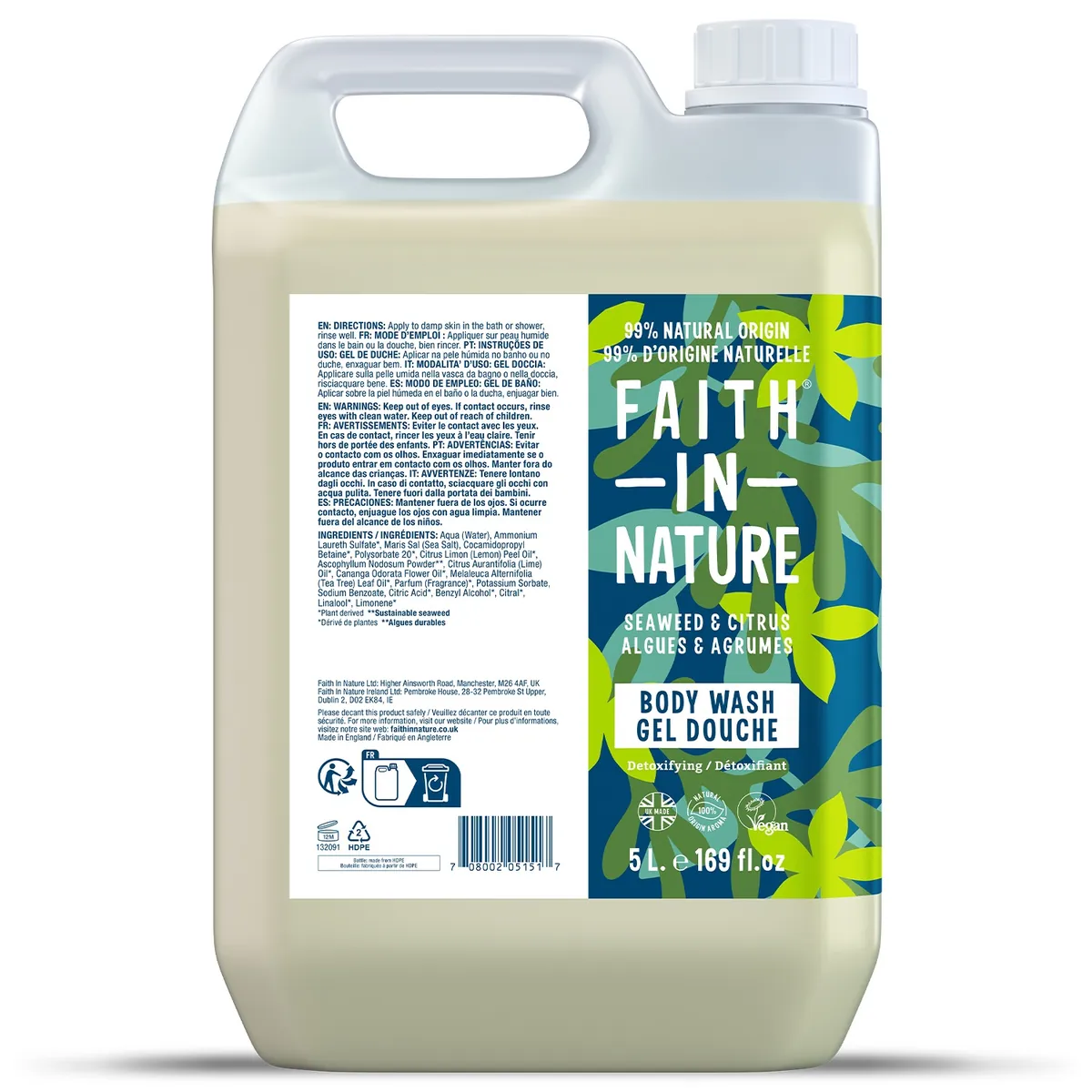 Äntligen finns den här duschtvålen med sjögräs och citrus från Faith in Nature i 5-liters förpackning! Duschtvålen innehåller sjögräsextrakt och verkar stimulerande och vårdande för alla hudtyper. Tvättar rent milt och skonsamt