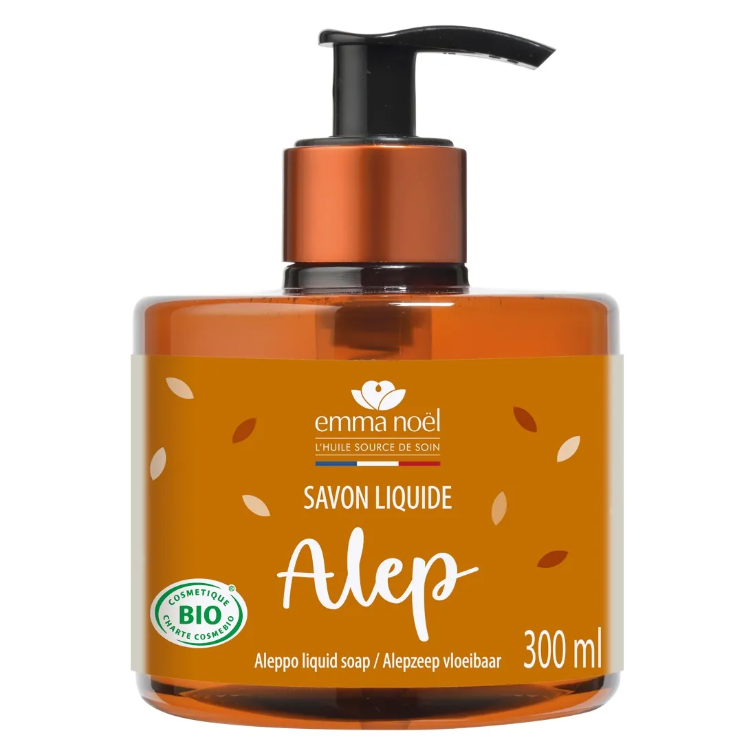 Emma Noëls flytande Aleppo-tvål med oliv- och lagerbärsolja är en mycket mild handtvål som passar för känslig hud. Tvålen är känd för sina återfuktande egenskaper och ger ett härligt lödder. Den är framställd av 99 % naturliga ingredienser samt ekologiska oljor och extrakt, vilket ger tvålen en underbar doft. Tvålen är helt fri från artificiella färgämnen och har inte testats på djur. Den vackra flaskan har en praktisk pump som är lätt att använda.