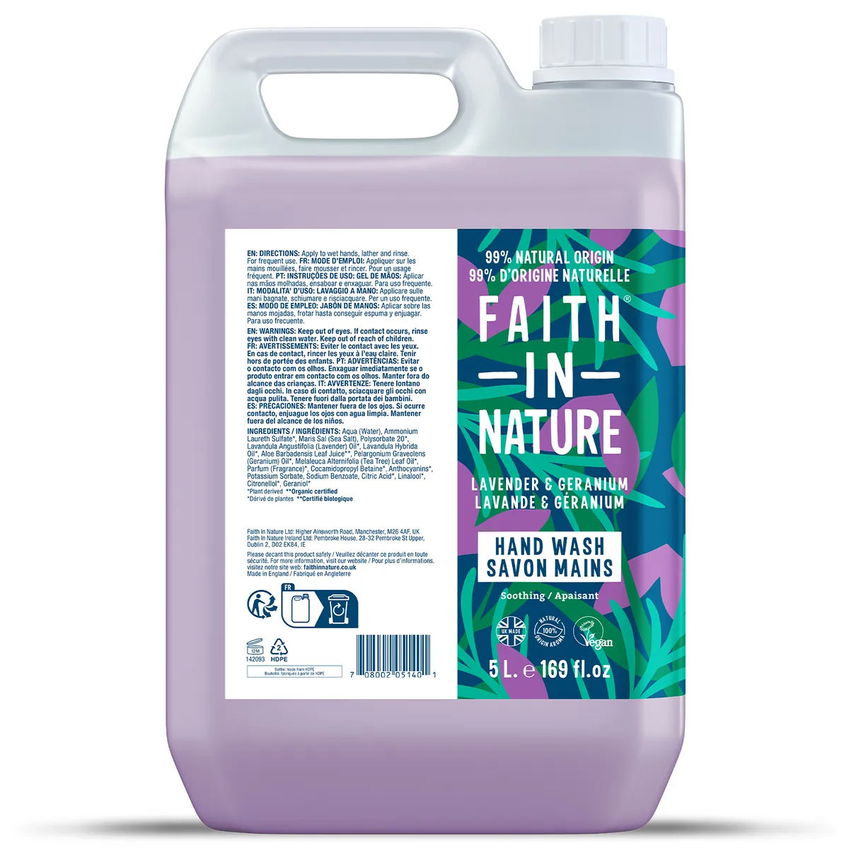 Äntligen finns den här tvålen med lavendel och geranium från Faith in Nature i 5-liters förpackning! Tvålen har en ljuvlig doft av lavendel och geranium som ger en känsla av lugn. Passar alla hudtyper. Andas djupt och slappna av.