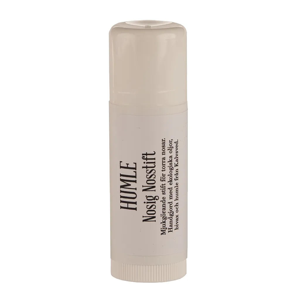 HUMLE Nosigt Nosstift är ett naturligt och förebyggande bivaxcerat för torra, skrovliga och känsliga nosar, berikat med humleolja från egen gård. Den mjukgörande formulan med ekologiska oljor och bivax skyddar huden och skapar en miljö där svamp och bakterier har svårt att trivas. Stiftet är doftfritt, drygt och enkelt att applicera. Alla utvalda råvaror, sheasmör, ricinolja, olivolja, svenskt bivax, humleolja och E-vitamin, är ekologiska.