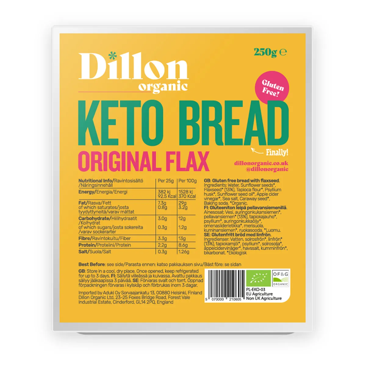 Vatten, solrosfrön*, linfrö* (13%), tapiokamjöl*, psylliumskal*, solrosolja*, äppelcidervinäger*, havssalt, kummin*, bakpulver *=ekologisk
