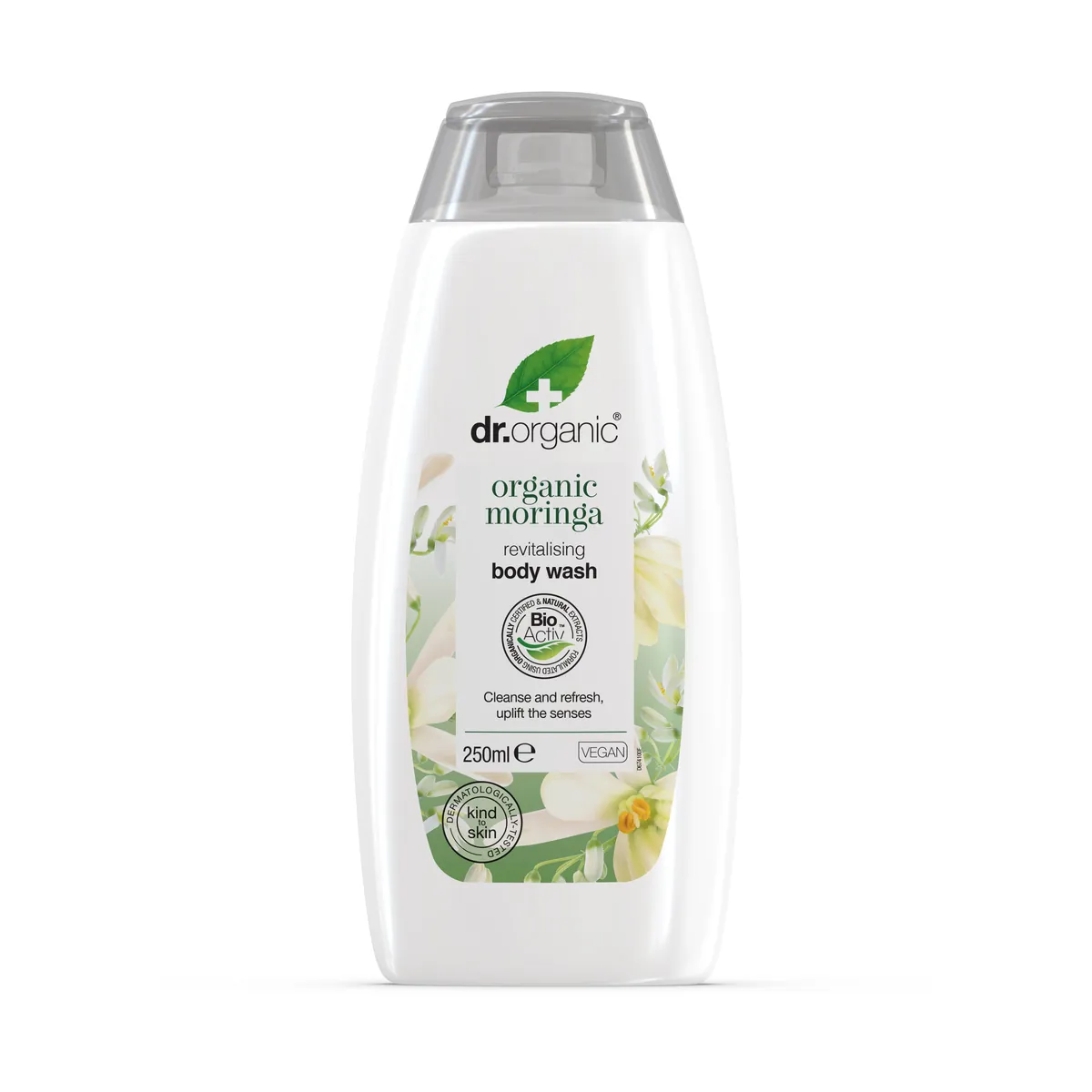 Dr Organics vitaliserande kroppstvål med moringa och aloe vera har en elegant doft och rengör skonsamt.