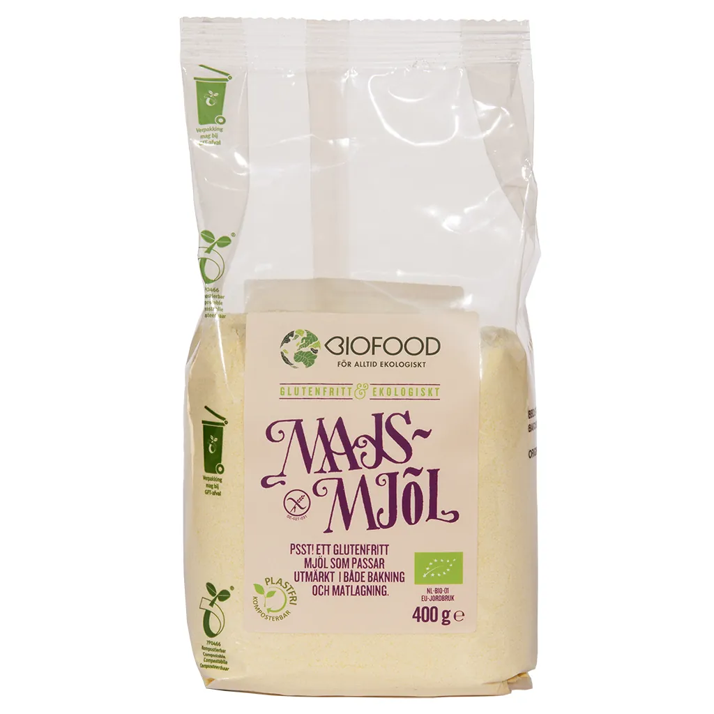 I Biofood’s glutenfria serie finns förutom majsmjöl även rårismjöl, bovetemjöl, quinoamjöl och teffmjöl, som ger fyllig smak och näring till dina favoritrecept.