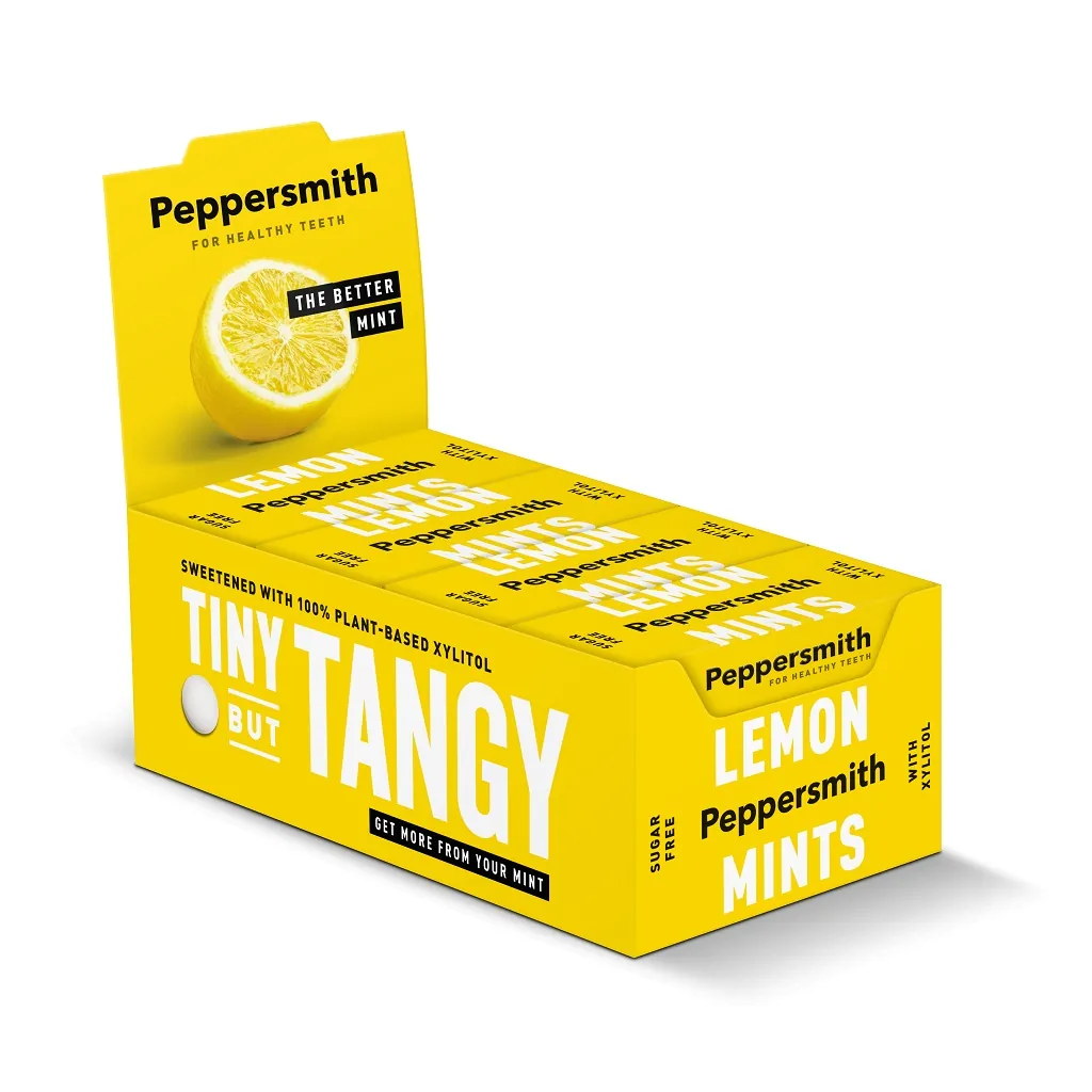 Uppfriskande och stärkande pastiller med citron och pepparmynta är ett naturligt alternativ till vanliga sugtabletter. Den fräscha citrusmaken kommer från de fina citronsorterna Femminello och Monachello som odlas på Sicilien. Stänket av mintsmak utvinns från engelsk pepparmint som odlas på en liten gård i Hampshire. Pastillerna sötas med 100 procent xylitol som kommer från europeiska leverantörer med mycket strikta tillverkningsnormer. Xylitol har i vissa studier visat sig minskar plack och stärka tänderna och produkten är godkänd av den brittiska Dental Health Foundation. Ingredienserna är växtbaserade, vilket gör att pastillen passar veganer och vegetarianer.