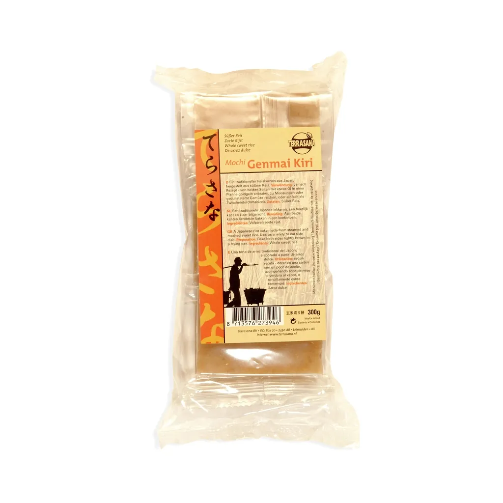 Sött brunt ris från Japan. Stek i lite olja på båda sidor med lock på pannan, tills mochin buktar.
