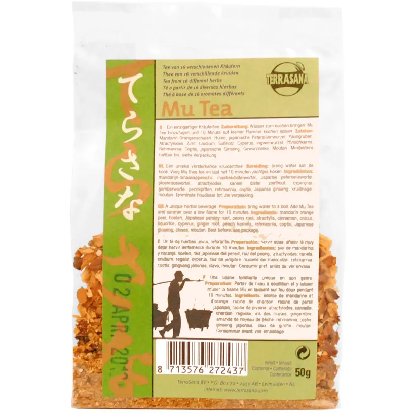 Mu-te är en synergisk teblandning av 16 olika balanserade bergsörter. Teet utvecklades inom makrobiotiken för att lindra besvär med bland annat magen, och används idag även för problem med underliv, lungor, hjärta och nerver. Ej lämplig för barn!