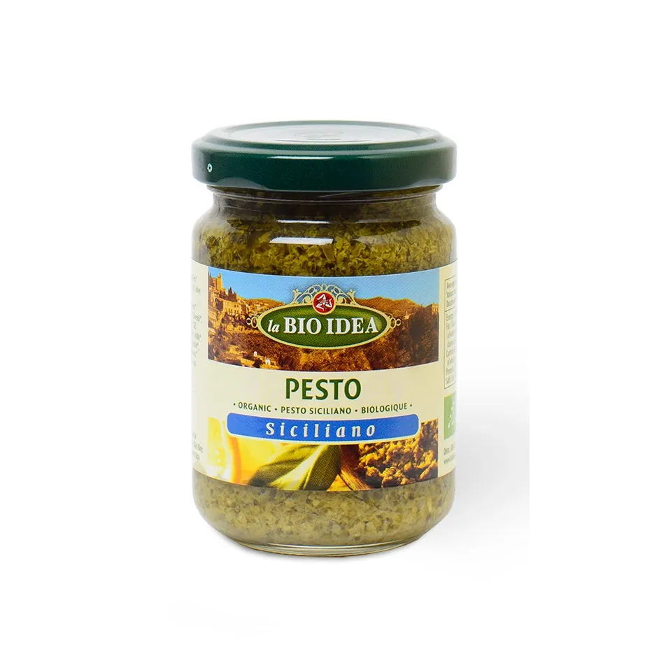 Basilika* (42%), olivolja*, solrosolja*, MANDEL* (12,5%), havssalt, vitlök*, citronsyra. *Ekologiskt certifierad ingrediens.