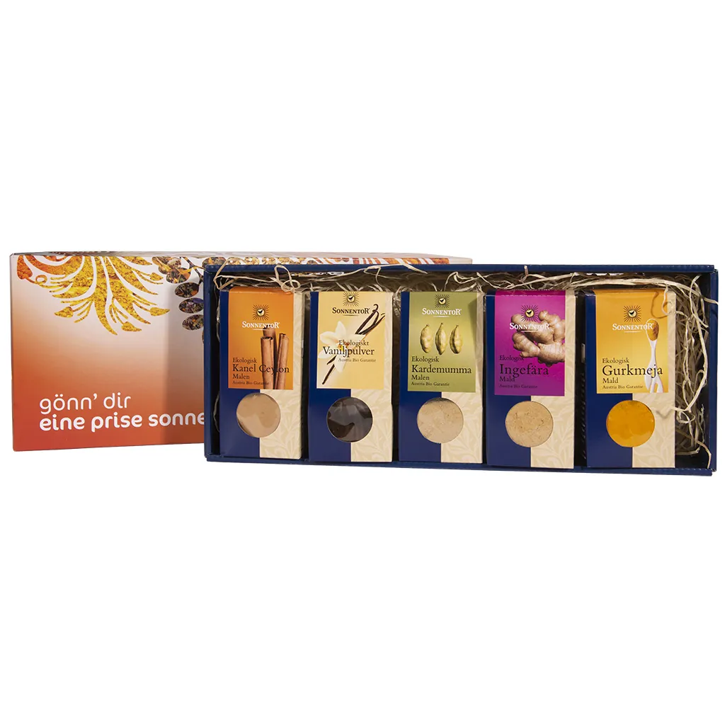 En smakhöjande gå bort present fylld med julens alla kryddor. Lika perfekta till helgens bak som boost i morgonsmoothien eller för att ge raw food bollarna extra sting. Innehåller mald kardemumma, mald kanel ceyon, mald ingefära, vaniljpulver och mald gurkmeja. Allt ekologisk förstås!