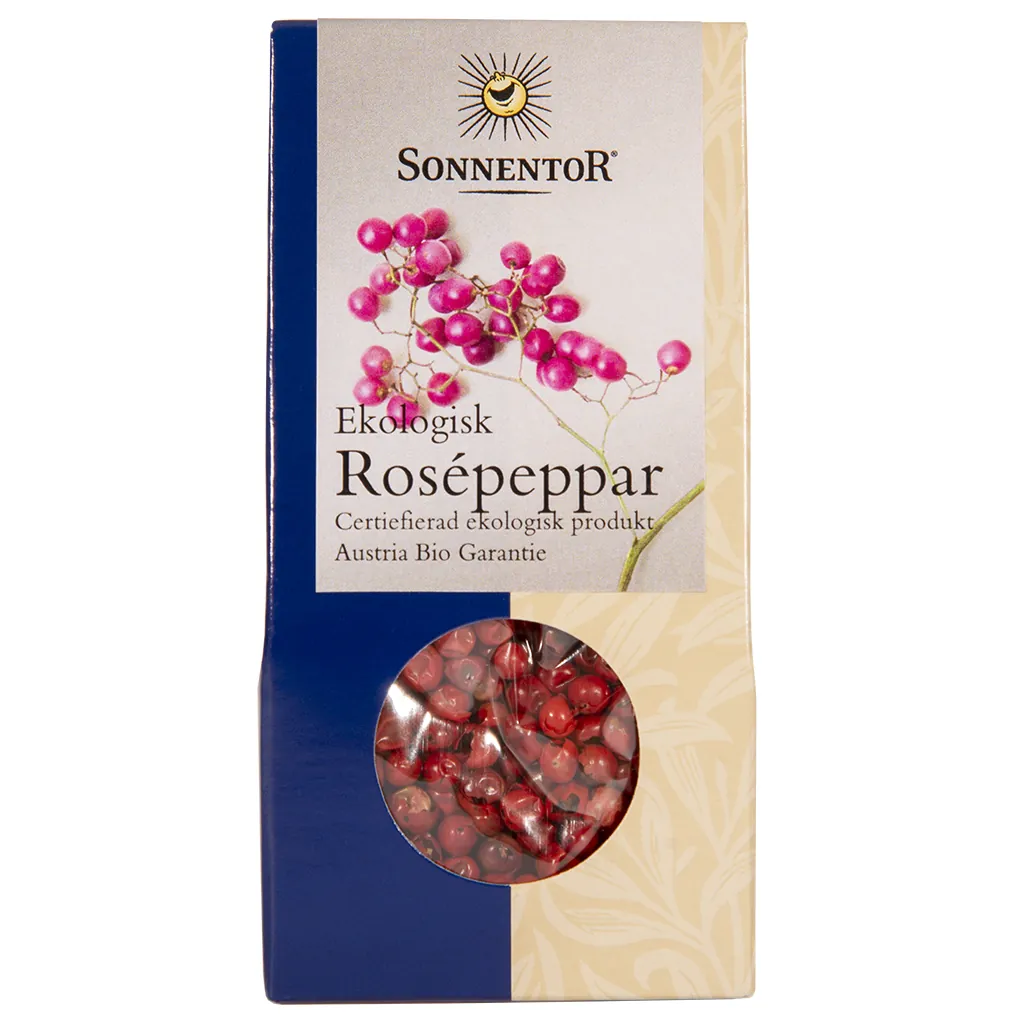 Sonnentors ekologiska rosépeppar är en riktig smakhöjare. Överraska gästerna med ugnsbakade rabarber i smör och hela rosépeppar serverad med vaniljglass – unik dessert som snabbt blir en snackis.