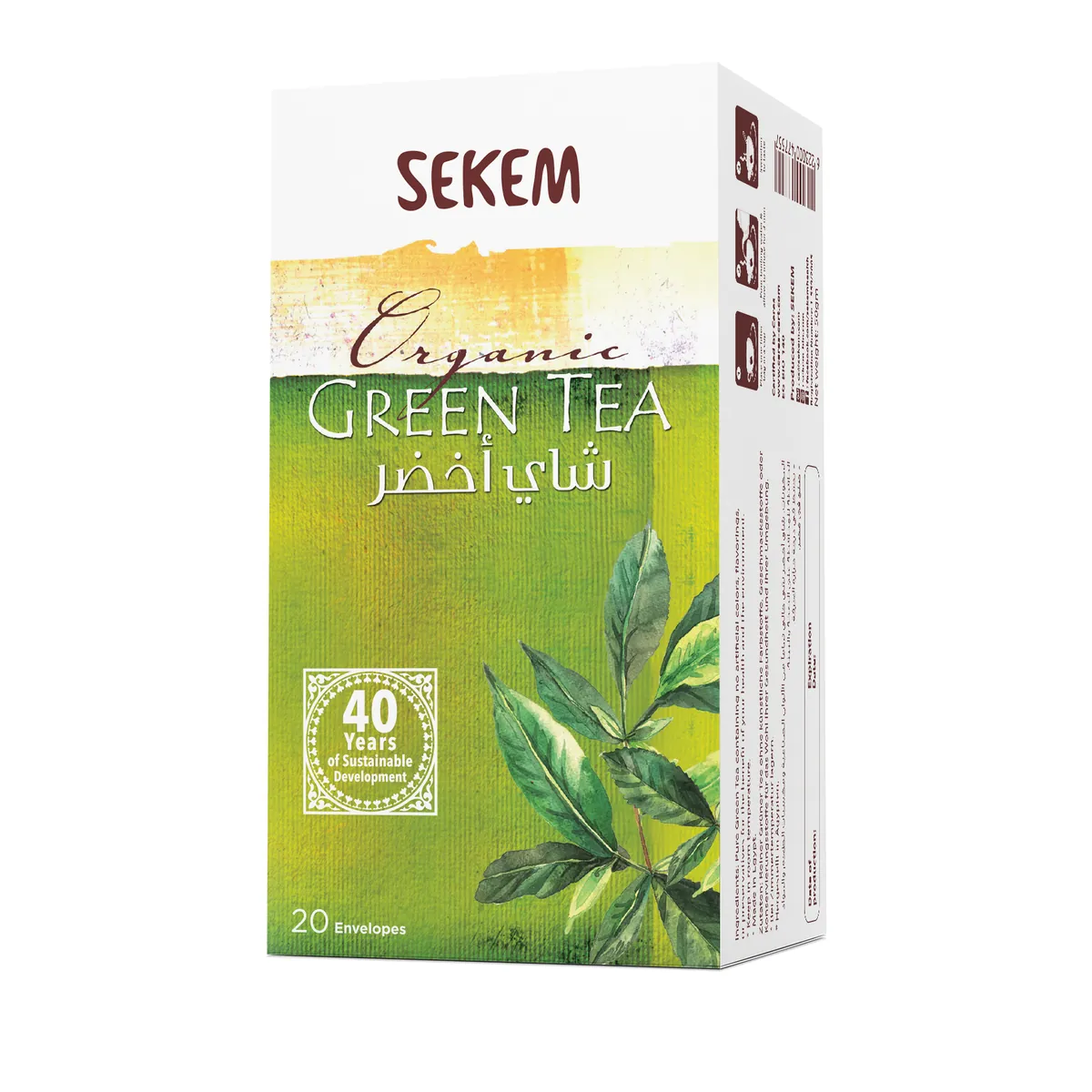 Grönt te örtblad torkade, malda i 1-2 mm skuren form och förberedda, packade i filterpåsar för dricksbruk i kartong, 20 filterpåsar.