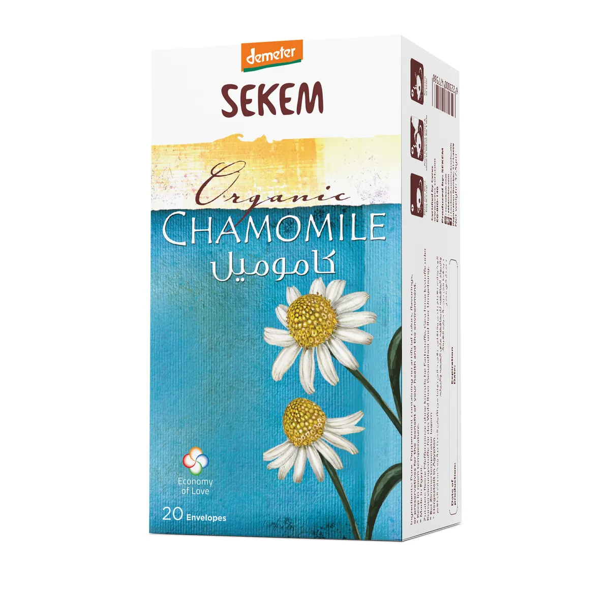 Kamomill örtblad torkade, malda och förberedda, förpackade i filterpåsar för dryckesbruk i kartong, 20 filterpåsar.