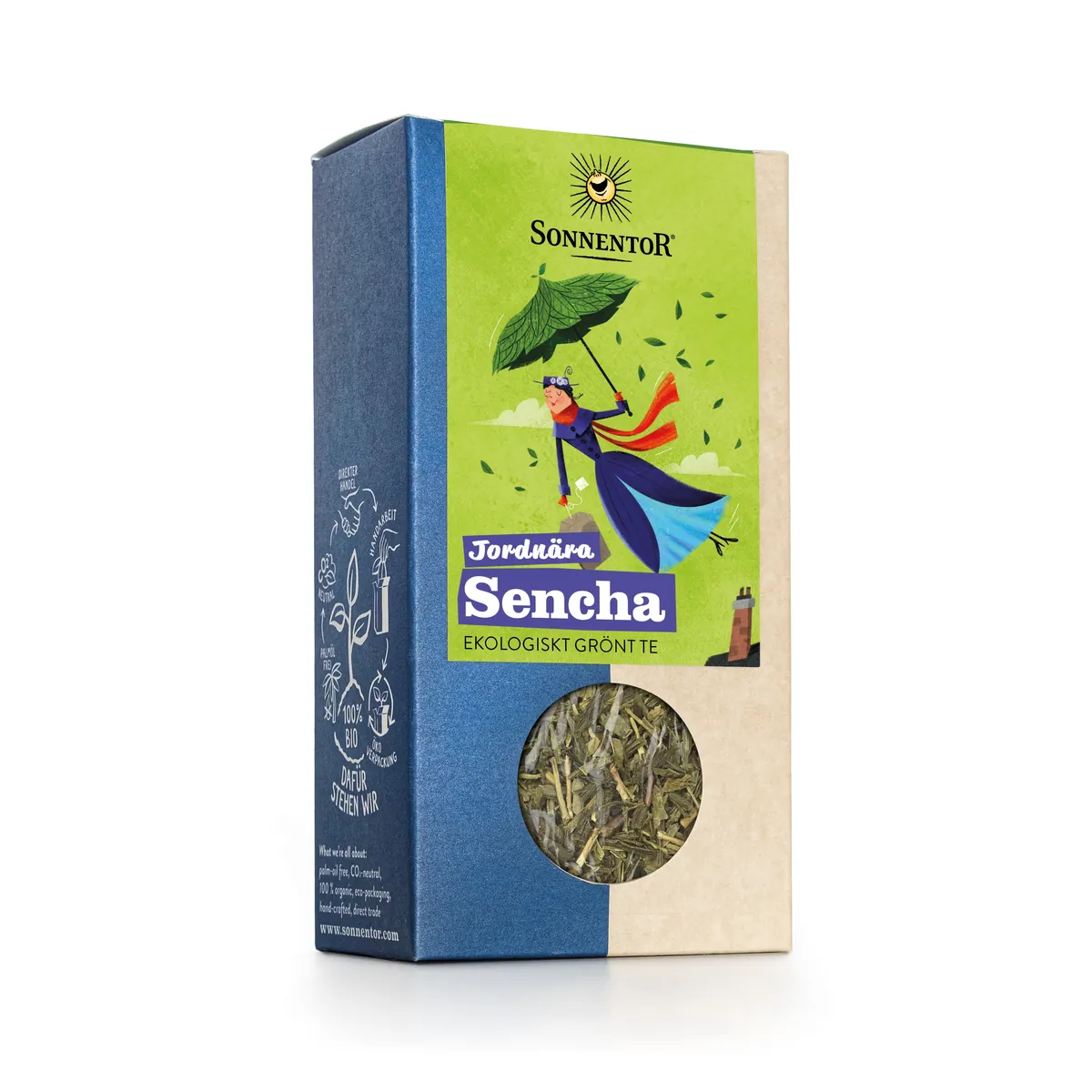 Sencha är ett grönt te som har ångats, till skillnad från många kinesiska teer som hettas upp i wok, och är ett av Japnas vanligaste tesorter. Det är Sacha-teet från Sonnentor är ekologiskt och har övertoner av härlig grönska. Sencha kan man njuta som det är, till lättare rätter, och till sött eller salt tilltugg.