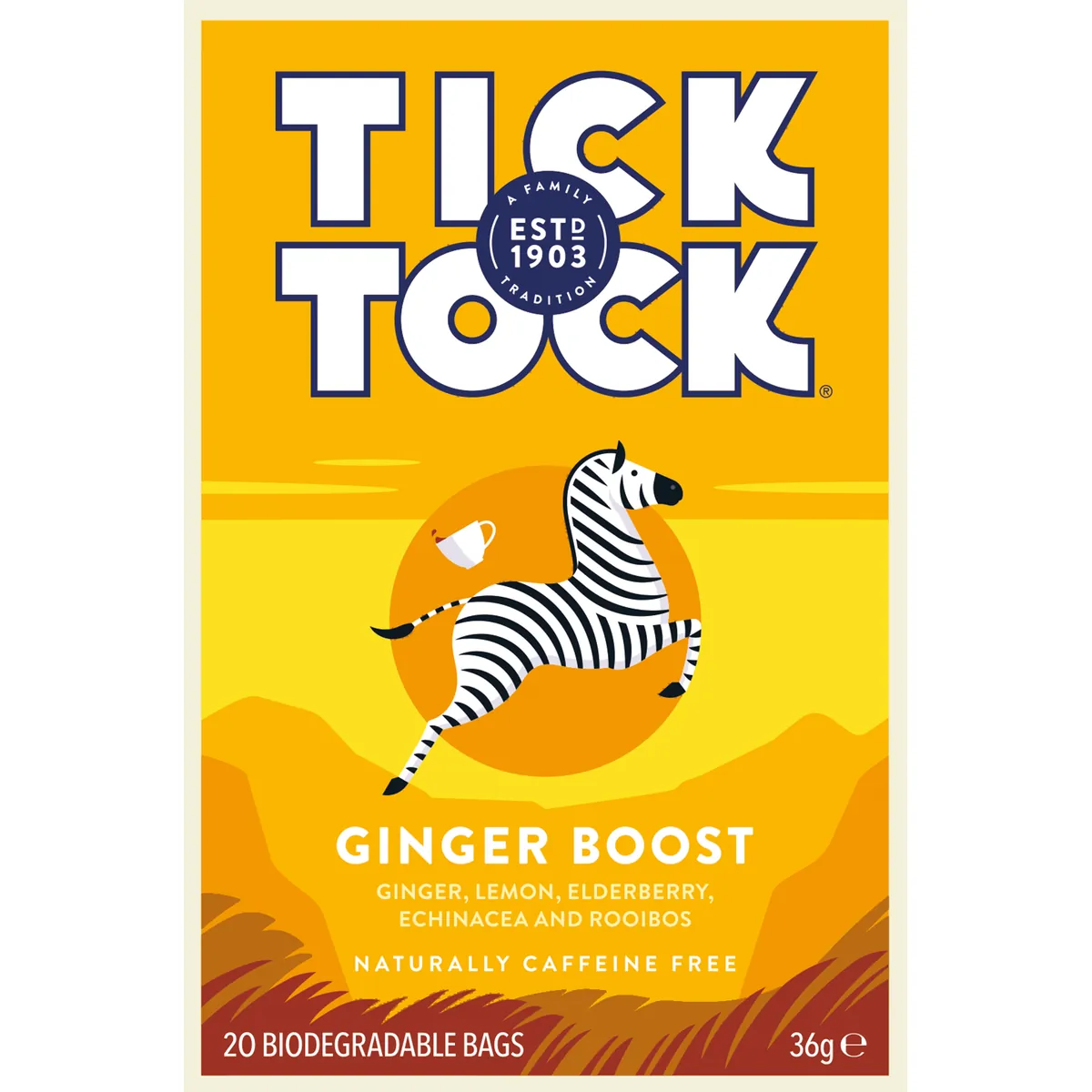 Tick Tock är en serie med populära och naturligt koffeinfria rooibos-teer som har avnjutits av te-drickare sedan 1903. Telådan har en ikonisk retro-design och innehåller 20 tepåsar som är klorfria, biologiskt nedbrytbara och komposterbara. Eftersom rooibos-te är naturlig koffeinfritt är det perfekt att njuta av när som helst under dagen.