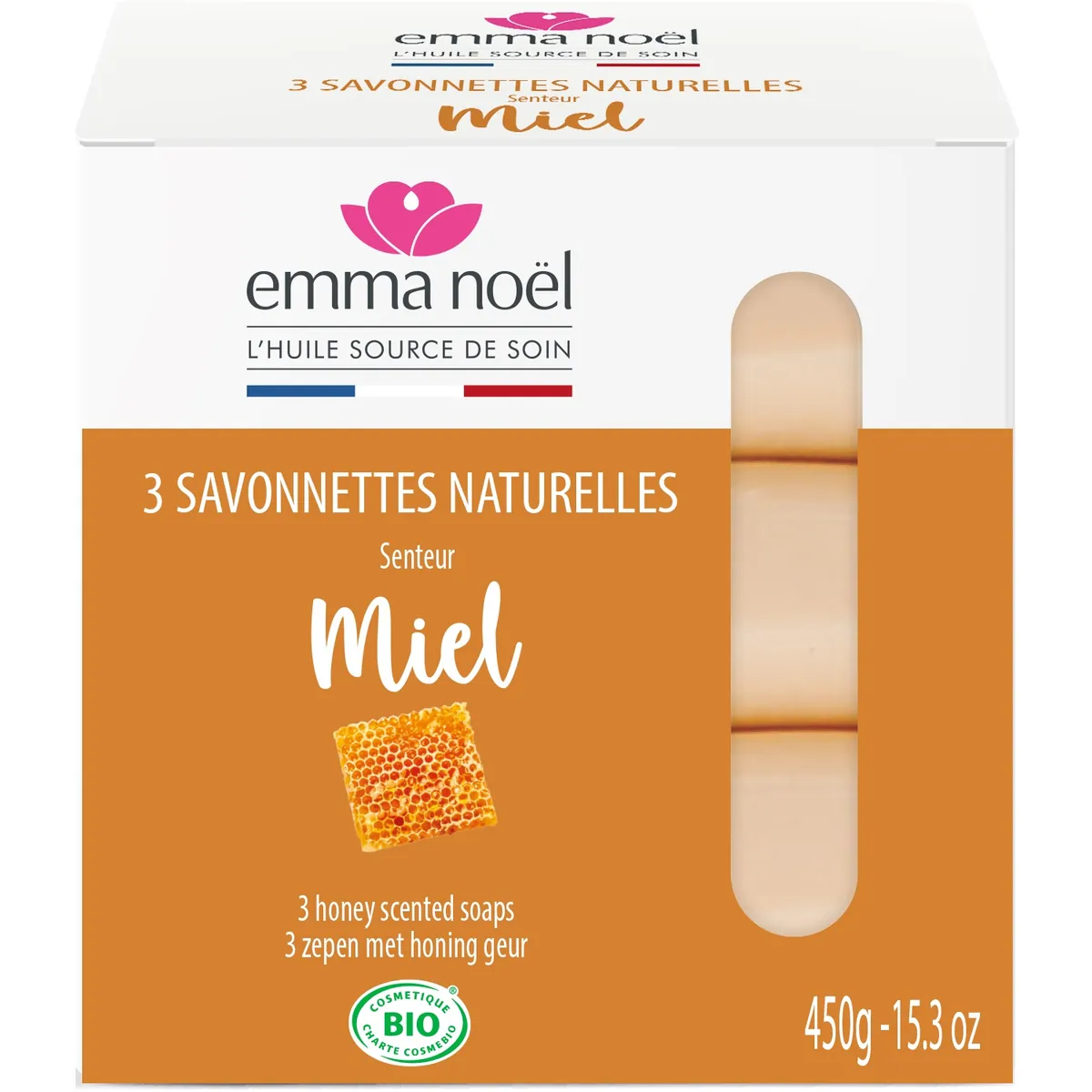 Emma Noëls fasta tvålar med honung i 3-pack har en bra konsistens, fasthet och löddrande förmåga. De är framställda av 99 % naturliga ingredienser samt ekologiska oljor och extrakt, vilket ger tvålarna en härlig söt doft.